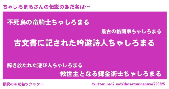 | 意味不明あだ名 | 『住所不定無職ちゃしろまる(12歳)』 |