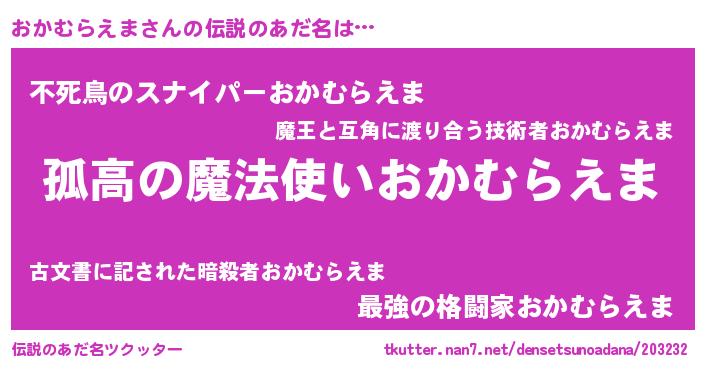 | 意味不明あだ名 | 『とにかく怪しいおかむらえま』 |