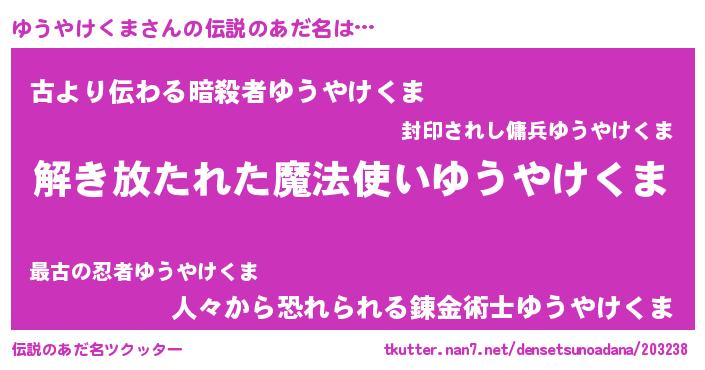 | ヘコむあだ名 | 『ゆうを』『ゆうやけくま(笑)』 |