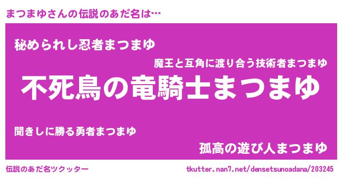 | ヒーロー風カッコイイあだ名 | 『スーパーマツマユ』『最強戦士マツマユ』 |