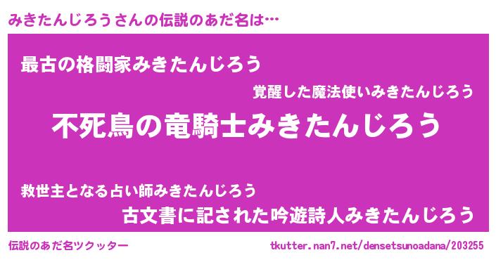 | 意味不明あだ名 | 『自称みきたんじろう』 |