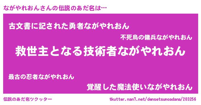 | 男性向けラノベタイトル風あだ名 | 『うちのながやれおんが世界を掌握している!』 |