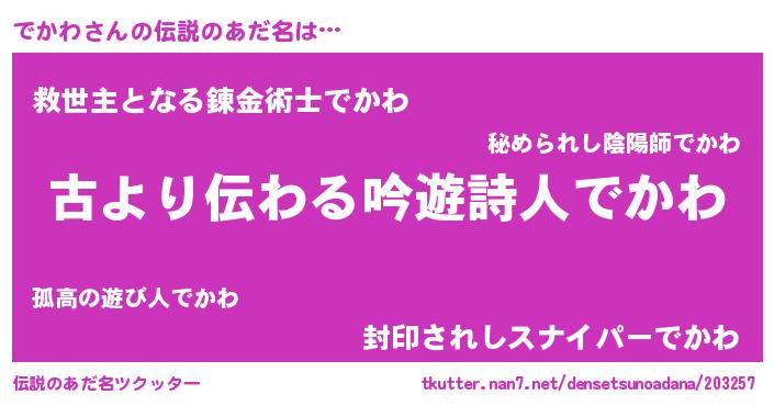 | ヘコむあだ名 | 『でかわ(小並感)』『でかもー』 |