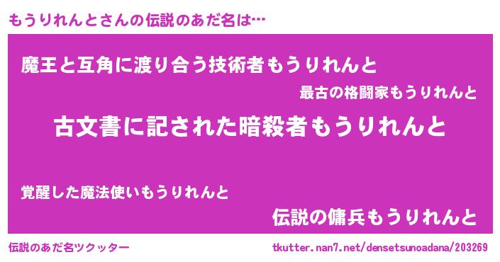 | 意味不明あだ名 | 『永久保存もうりれんと』 |