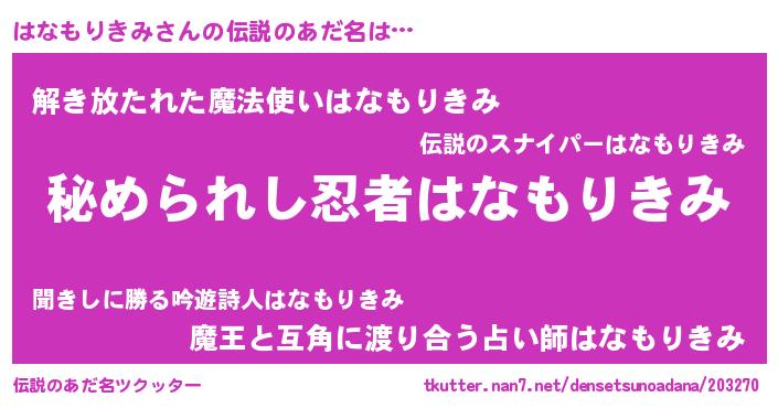 | 意味不明あだ名 | 『はなもりきみフォーエバー』 |