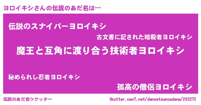 | ヒーロー風カッコイイあだ名 | 『仮面ヨロダー』『正義の使者ヨロイキシ』 |