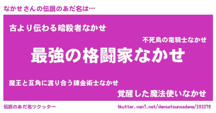 | 意味不明あだ名 | 『なかせフォーエバー』『永久保存なかせ』 |