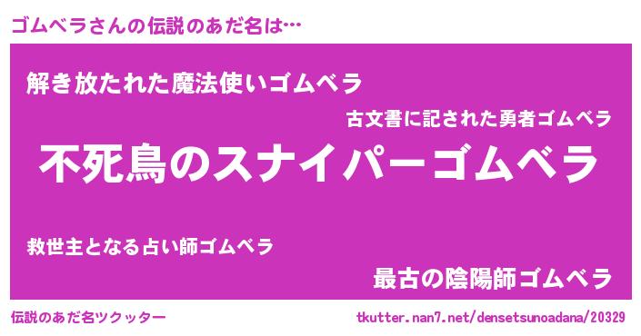| 欧米人風あだ名 | 『ダレノガレゴムベラ』 |