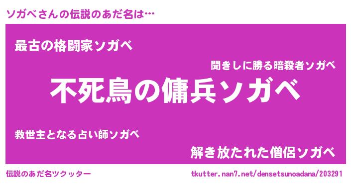 | ヒーロー風カッコイイあだ名 | 『ウルトラ戦士ソガベ』『仮面ソガダー』 |