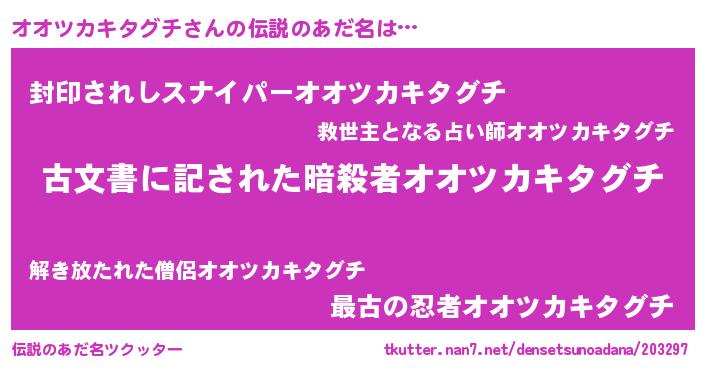 | 欧米人風あだ名 | 『ダレノガレオオツカキタグチ』 |
