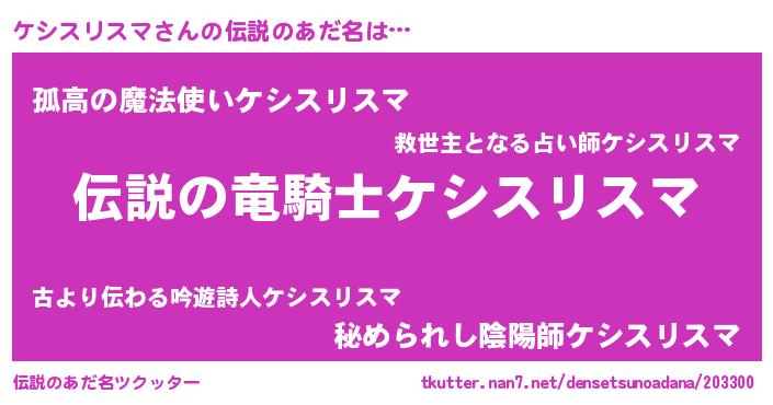 | 男性向けラノベタイトル風あだ名 | 『緋弾のケシスリスマ』 |