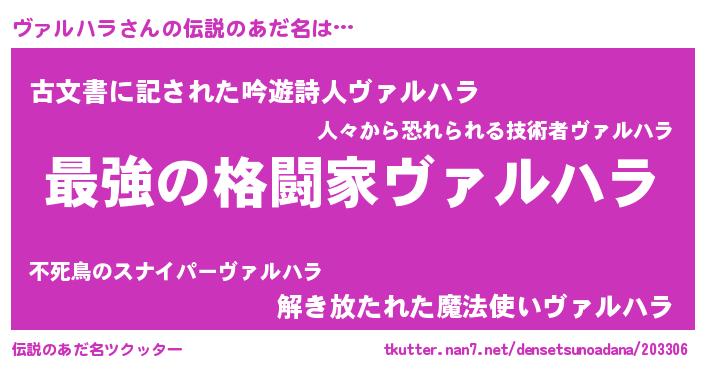 | 意味不明あだ名 | 『ヴァルハラフォーエバー』 |
