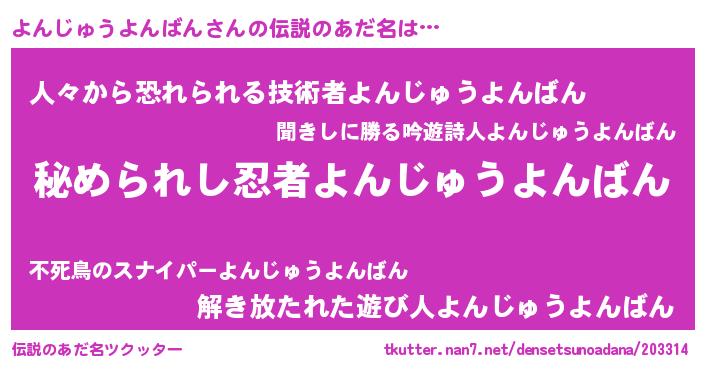 | ファンタジー風あだ名 | 『エターナルヨンジュウヨンバンー』 |