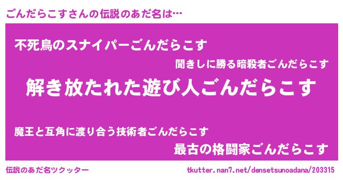| ピコ太郎風あだ名 | 『ゴン十郎』『ゴコ史郎』『ピゴ四郎』 |