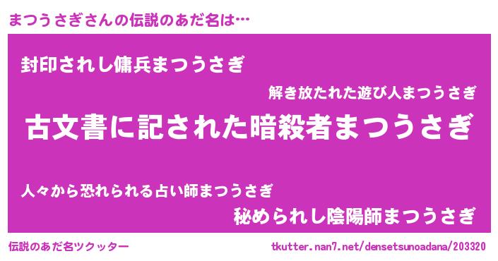 | 胡散臭い通販商品みたいなあだ名 | 『前代未聞の健康食品…その名も「まつうさぎ」』 |