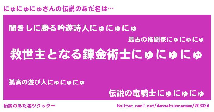 | 男性向けラノベタイトル風あだ名 | 『うちのにゅにゅにゅが世界を掌握している!』 |