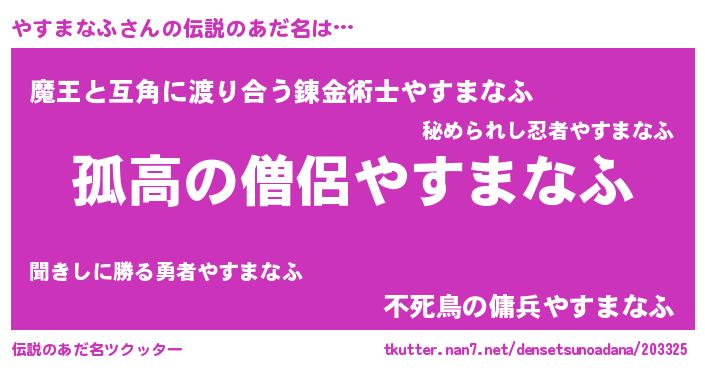 | 胡散臭い通販商品みたいなあだ名 | 『信頼と実績のネックレス…その名も「やすまなふ」』 |