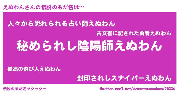 | 男性向けラノベタイトル風あだ名 | 『やはりえぬわんの青春ラブコメはまちがっている 』 |