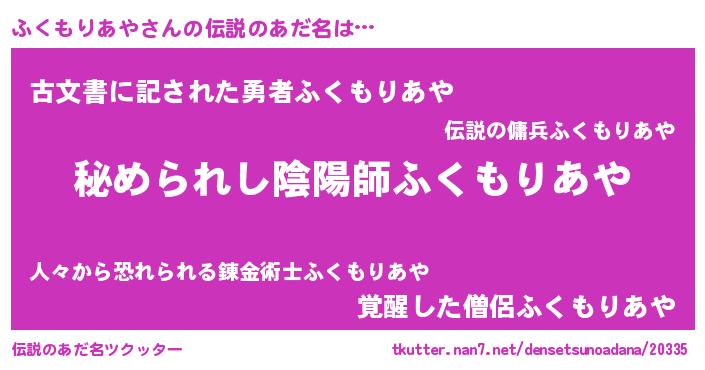 | 肩書あだ名 | 『ふくもりあや大将』『ふくもりあや総統』 |