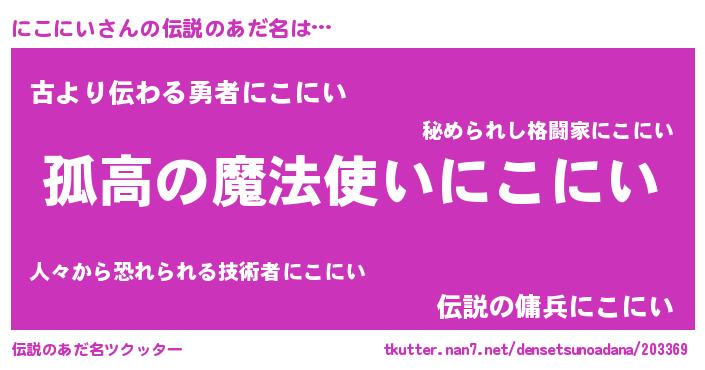 | ヒーロー風カッコイイあだ名 | 『魔戒騎士ニコ』『サイバー戦士ニコニイ』 |