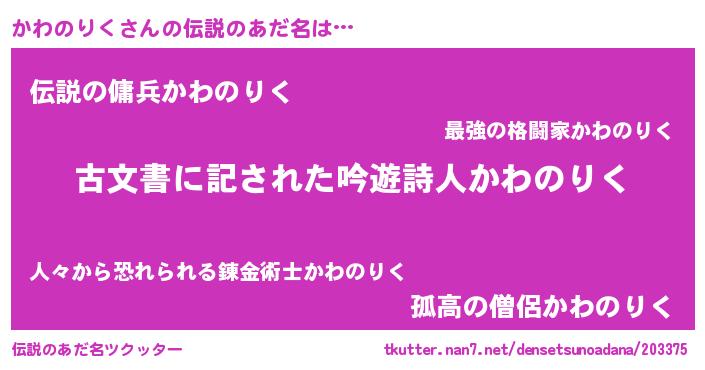 | 意味不明あだ名 | 『永久保存かわのりく』 |