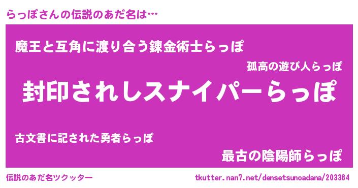 | 欧米人風あだ名 | 『ケンブリッジらっぽ』『マイケルらっぽ』 |