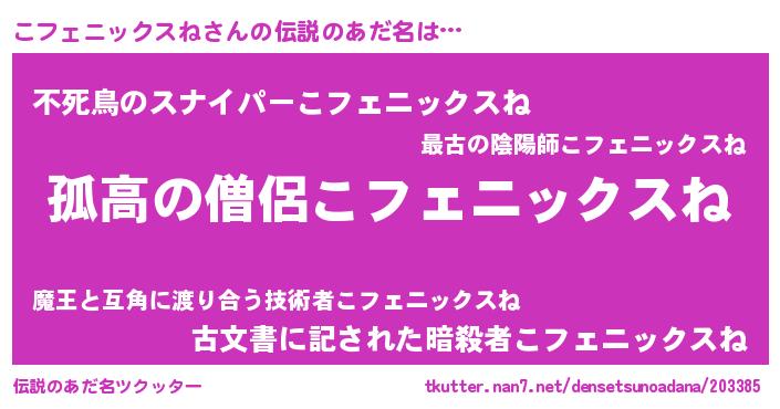 | ポケモン風あだ名 | 『ヒコフェニックスネ』『コフセウス』 |