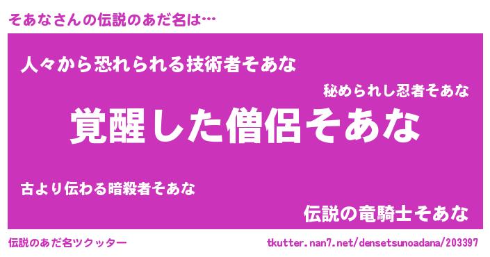 | 意味不明あだ名 | 『自称そあな』『とにかく怪しいそあな』 |