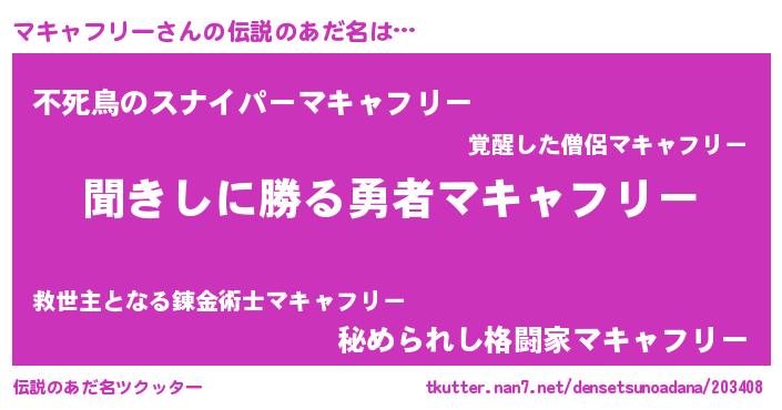 | 胡散臭い通販商品みたいなあだ名 | 『絶対に幸福をもたらす水素水…その名も「マキャフリー」』 |