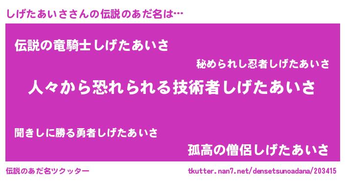| ヒーロー風カッコイイあだ名 | 『仮面シゲダー』『愛の使者しげたあいさ』 |