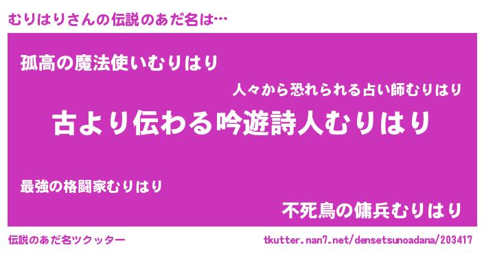 | ヘコむあだ名 | 『むりはり(小並感)』『むりお』 |