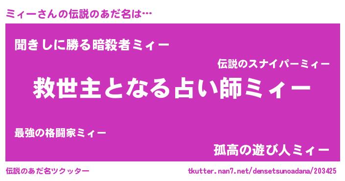 | 意味不明あだ名 | 『自称ミィー』『眠気覚ましガムミィー味』 |
