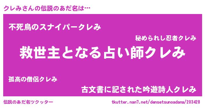 | ヒーロー風カッコイイあだ名 | 『天空の使者クレみ』『仮面クレダー』 |