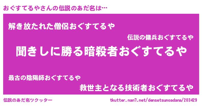 | 欧米人風あだ名 | 『トリンドルおぐすてるや』 |