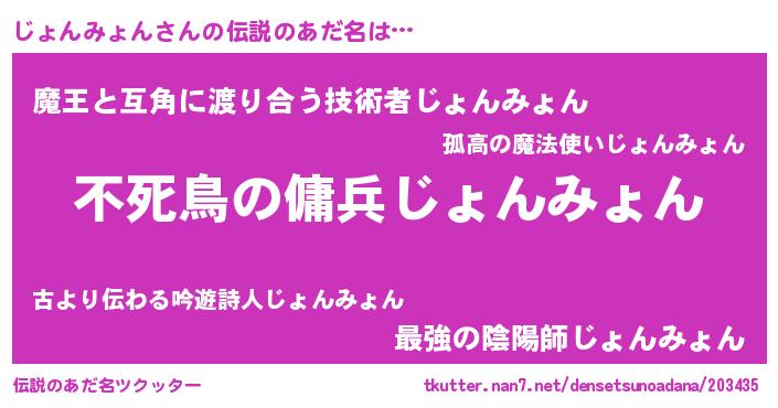 | 女子向けラノベタイトル風あだ名 | 『シンデレラじょんみょん家の靴箱館』 |