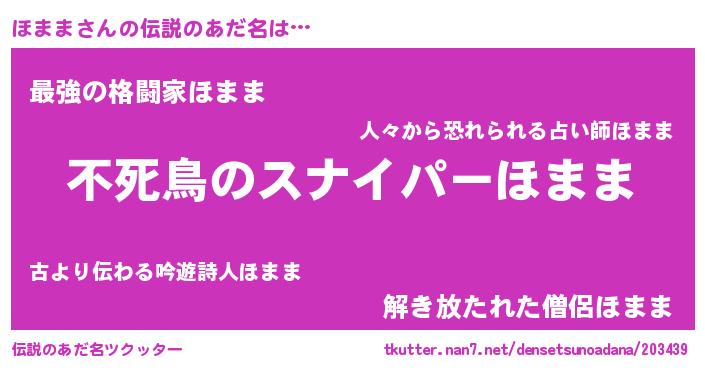 | 胡散臭い通販商品みたいなあだ名 | 『モテモテ間違いなし霊験あらたかなお札…その名も「ほまま」』 |