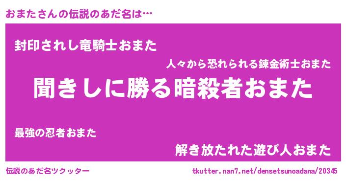 | ヒーロー風カッコイイあだ名 | 『ネオオマタ』『仮面オマダー』 |