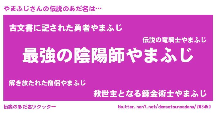 | ヒーロー風カッコイイあだ名 | 『仮面ヤマダー』『ウルトラやまふじマン』 |