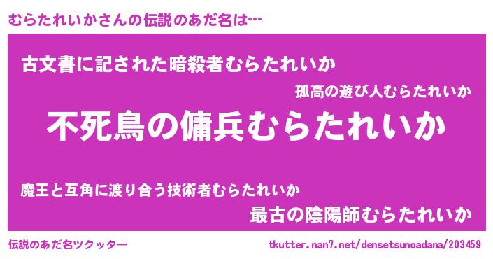 | ヒーロー風カッコイイあだ名 | 『スーパームラタレイカ』『炎刃騎士ムラ』 |
