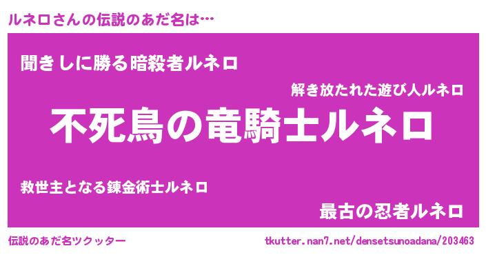 | 男性向けラノベタイトル風あだ名 | 『ルネロの憂鬱』『魔弾の王とルネロ』 |