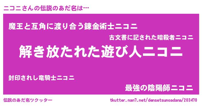 | 意味不明あだ名 | 『とにかく怪しいニコニ』『自称ニコニ』 |