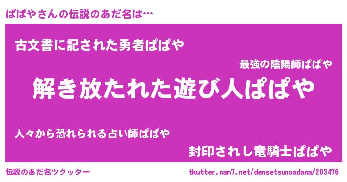 | ヒーロー風カッコイイあだ名 | 『幻影騎士パパ』『ネオパパヤ』 |