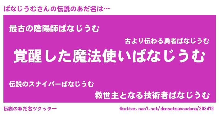 | 男性向けラノベタイトル風あだ名 | 『ばなじうむの嫁は女の子じゃないと思った?』 |