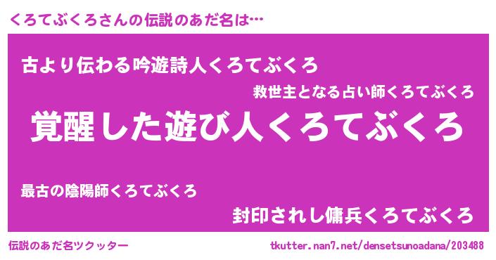 | ヒーロー風カッコイイあだ名 | 『仮面クロダー』『幻影騎士クロ』 |