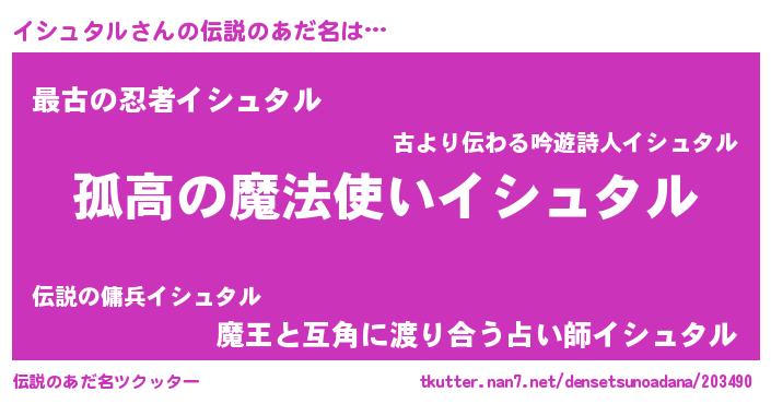 | ヒーロー風カッコイイあだ名 | 『暗黒騎士イシ』『愛の使者イシュタル』 |