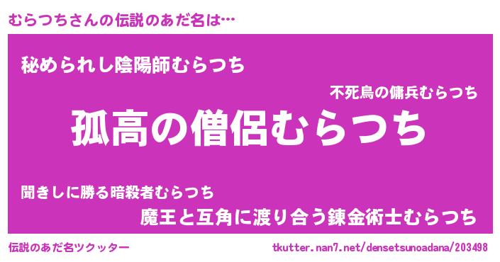 | ヒーロー風カッコイイあだ名 | 『黄金騎士ムラ』『ウルトラむらつちマン』 |