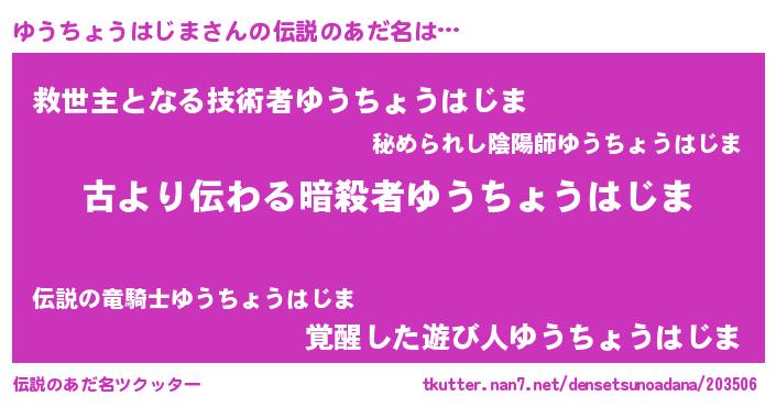 | 意味不明あだ名 | 『永久保存ゆうちょうはじま』 |