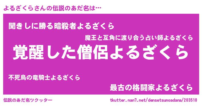 | 男性向けラノベタイトル風あだ名 | 『よるざくらの嫁は女の子じゃないと思った?』 |