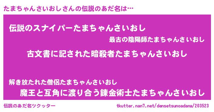 | 意味不明あだ名 | 『住所不定無職たまちゃんさいおし(40歳)』 |