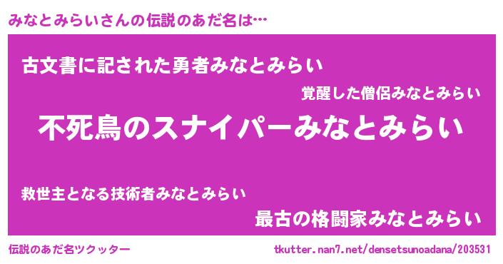 | 胡散臭い通販商品みたいなあだ名 | 『モテモテ間違いなし霊験あらたかなお札…その名も「みなとみらい」』 |